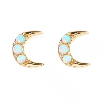 Gemnel Women 925 Sterling Silver Gold Plated Trio Opal Crescent Moon Stud Earrings