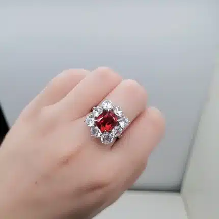 Charm 4 Carat Lab Grown Ruby Engagement Rings Sterling Silver 925 Jewellery Flower Wedding Rings for Christmas Gift