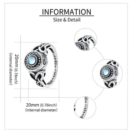 Ashes Jewelry Design 925 Sterling Silver Always in My Heart Moonstone Urn Ring