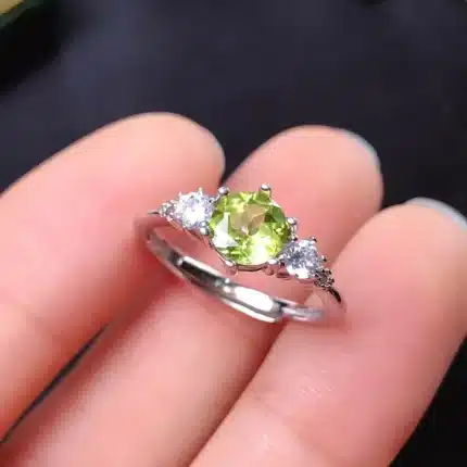Vintage Natural Peridot S925 Silver Fine Ring Rhodium Plated Jewelry Luxury 6*6mm Round Brilliant Cut Gemstone Easy Customized