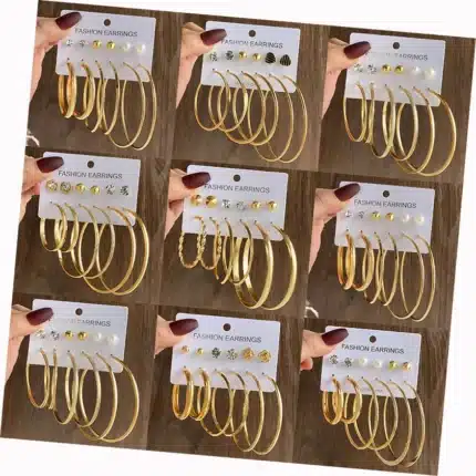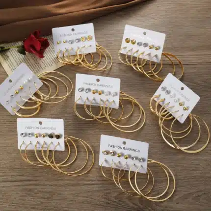 6Pairs/Set Hoop Earrings Set Gold Color Stud Earring Oversize Alloy Earring Women Vintage Fashion Jewelry Set