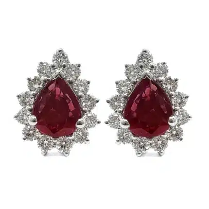China Direct Factory Pretty High Quality 18k Solid White Gold Real Diamond Round Pear Ruby Centre Classic Studs Earring For Lady