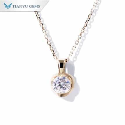 Tianyu Gems Round DEF VVS1 Moissanite Diamonds 2.0mm 14k Yellow Gold with 45cm Chain Necklace for Women