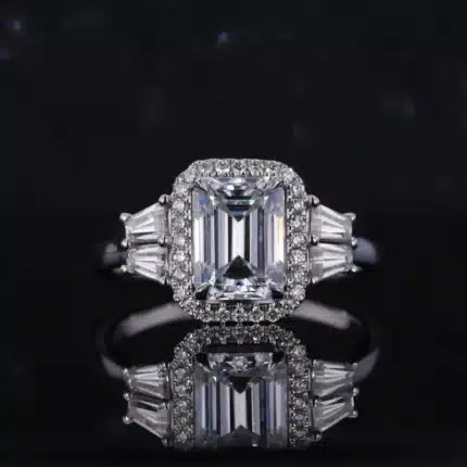 Key attributes Main Stone:Moissanite Rings Type:Wedding Bands or Rings Inlay technology:Claw Setting Setting Type:Prong Setting Style:Classic Occasion:Anniversary, Engagement, Gift, Party,