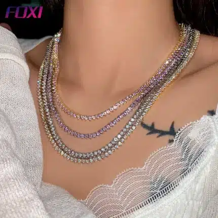 Key attributes Necklaces Type:Tennis Chain chain type:Tennis Chain Material Type:925 Sterling Silver Jewelry Main Material:Silver Main Stone:Moissanite Plating:Gold Plated, Rhodium