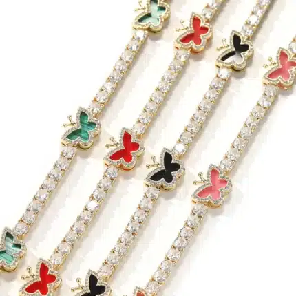 Hot Sale New Arrival 4mm Butterfly Tennis Chain 18K Gold Plated Tennis Bracelet Bling Luxury Women Man Popular Jewelry