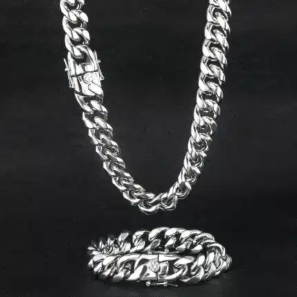 Hot Sell 2pcs/set Silver Gold Metal Color Hip Hop 12mm Width Stainless Steel Smooth Cuban Chain Necklace Bracelet
