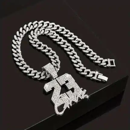 Iced Out Number 23 Pendant Necklace,Punk Number Charm for Men,Hip Hop Iced Out Chain 23 Pendant Rap Punk Rock Jewelry for Men