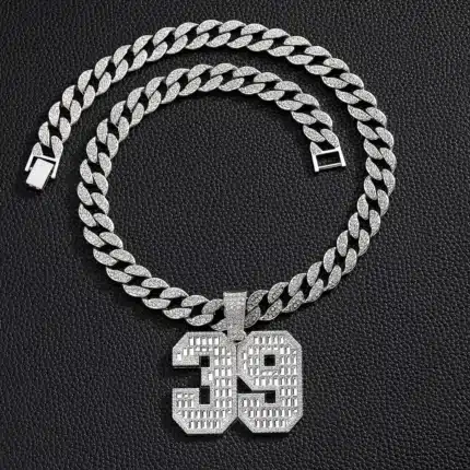 PD3032 Men’s Hip Hop Full Number 39 Pendant Necklace Gold Plated Zinc Alloy Cuban Chain with Rhinestone Link Chain Shape