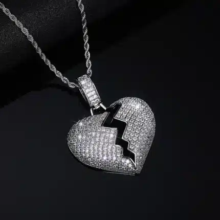 CAOSHI Hip Hop Twist Chain Silver Plated Necklace Punk Full Iced Out Zircon Diamond Broken Heart Pendant CZ Necklaces for Men