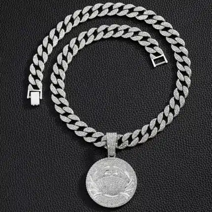 Cross Border HipHop New Product Round Pattern Alloy Full Diamond Pendant HipHop Cuban Chain Necklace Men’s Necklace Manufacturer