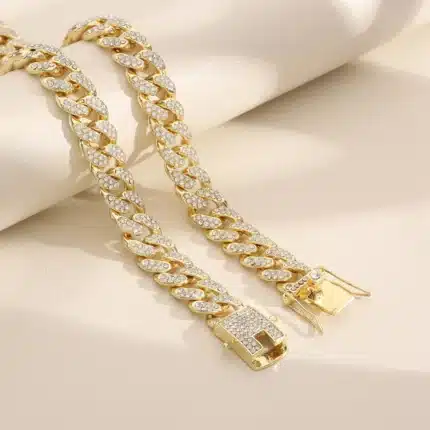 European and American Cool Hip Hop Full Diamond-Filled Zinc Alloy Link Chain Necklace for Gift