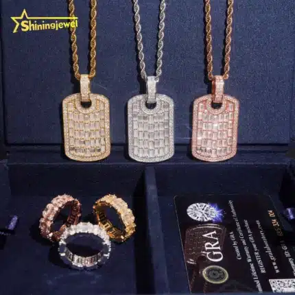 Hip Hop 925 Silver Moissanite Dog Tag Pendant Unisex Charm Iced Out Moissanite Pendant Pass Diamond Tester