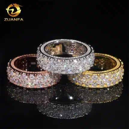 Luxury Unique Three Row Silver GRA Certificate Pass Diamond Tester White Gold Moissanite Ring