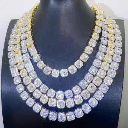 Hip Hop Jewelry Hot Sale Square Shape Link Chain Handmade Setting Main Round Cubic Zirconia Tennis Chain Necklace for Men Women