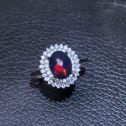 Fashion Natural Black Opal S925 Silver Fine Ring Rhodium Plated Jewelry Luxury 7*9 Cabochon Oval Cut Gemstone for Women Gift