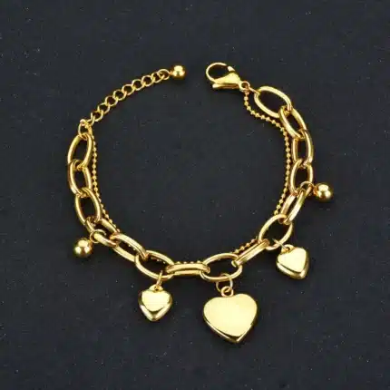 316L Custom 18k Gold Plated Heart Charm Chain Bracelet Chain Non Tarnish Stainless Steel Gold Heart Charm Bracelet