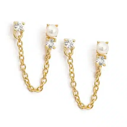 Gemnel Fashion 925 Sterling Silver 18k Gold Pearl Cubic Zirconia Chain Stud Earrings