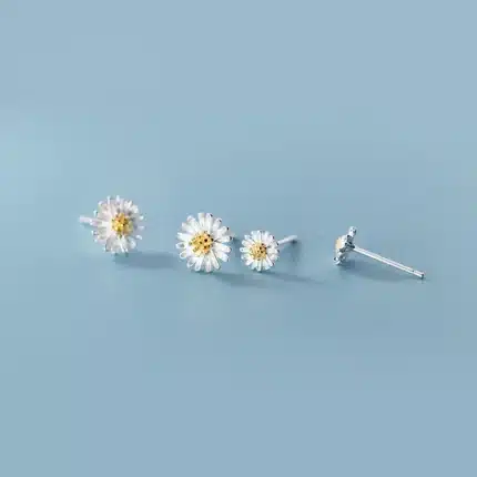 Fresh Sterling Silver 925 Cute Daisy Flower Stud Earrings for Students Jewelry Gifts