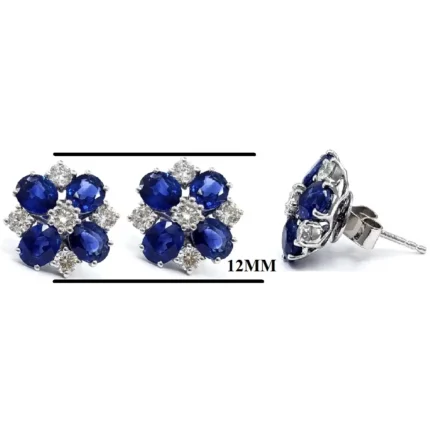 KOK Magnificent 14k White Gold Real Diamond Fashion Jewelry Sapphire Gemstone Classic Vintage Cluster Stud Earrings for Women