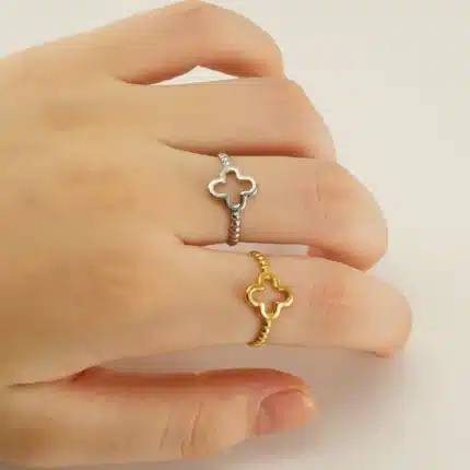 Dainty Waterproof 18K Gold Plated Stainless Steel Jewelry Open Adjustable Four Leaf Clover Finger Rings for Women