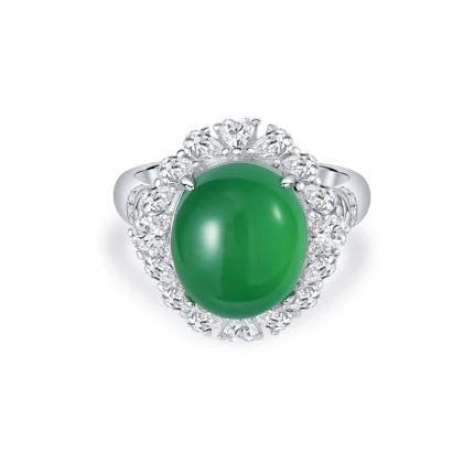 Fine Jewelry 925 Silver Ring Women Jewelry 12x14mm Oval Cut Green Agate Wedding Ring