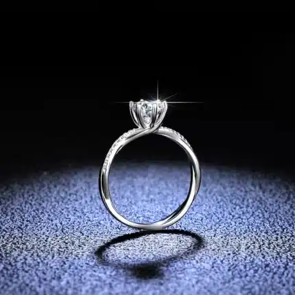 Key attributes Main Stone:Moissanite Plating:Rhodium Plated Rings Type:Wedding Bands or Rings Inlay technology:Claw Setting Setting Type:Prong setting Style:Classic Occasion:Anniversary, Party,