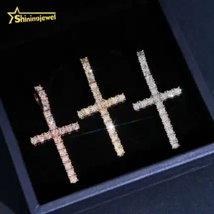 Key attributes Jewelry Main Material:925 SILVER Main Stone:Moissanite Jewelry Type:Pendants or Charms Style:Hiphop Shape:Cross Inlay technology:Claw Setting Pendants or Charms