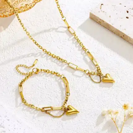 Key attributes Jewelry Main Material:Stainless Steel Plating:18K Gold Plated Style:Trendy Jewelry Sets Type:Necklace/Bracelet Occasion:Engagement, Gift, Wedding, Anniversary, Party Gender:Women’s