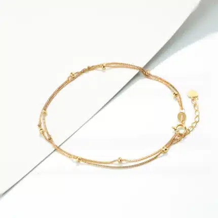 PCX Jewelry AU750 Pure Vintage Double Layered Beaded Bracelets 14k Solid Gold Charm Waist Pendant Women Girls 18k Gold Bracelet