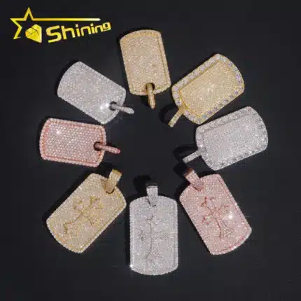 Wholesale Iced Out Baguette Mossanite Tag Pendant 925 Sterling Silver VVS Moissanite Diamond Pendant Fine Jewelry Ready to Ship