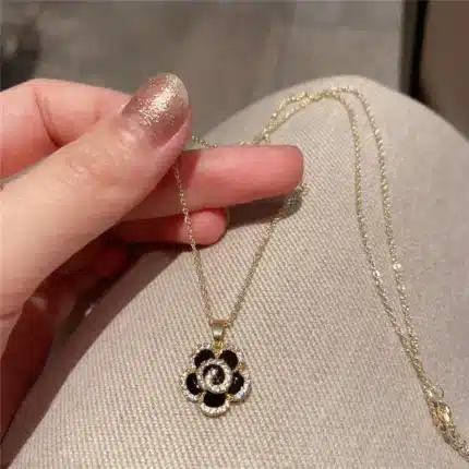 BINSHUO Camellia Gold – Plated Flower Micro Inlaid Zircon Clavicle Chain Korean Necklace Clavicle Chain
