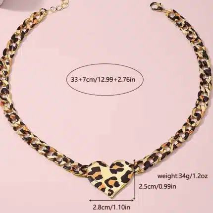Chic Leopard Print Heart Pendant Necklace Wildly Elegant Statement Piece for Women