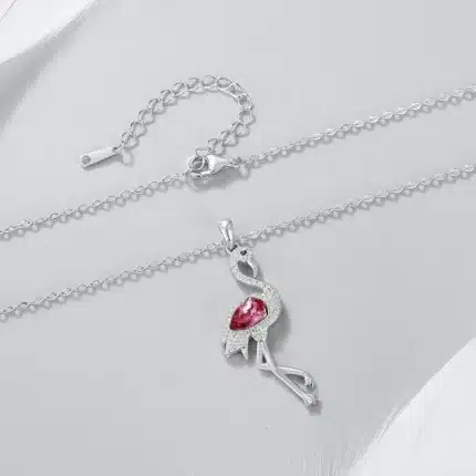 CDE YP1620 925 Sterling Silver Necklace Bird Crystal Stone Jewelry Pink Flamingo Pendant Necklace for Women