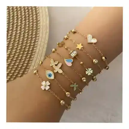 Key attributes Jewelry Type:Bracelets Jewelry Main Material:Stainless Steel Bracelets or Bangles Type:Charm Bracelets Style:Vintage Shapepattern:butterfly/heart Gender:Unisex Plating:18K Gold Plated