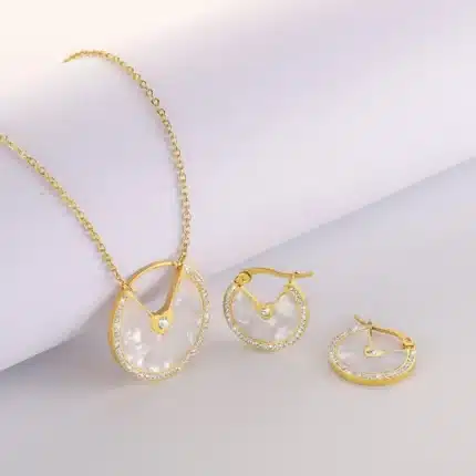 Customized Boutique New Set Simple Temperament Love White Mother of Pearl Stainless Steel Necklace Earrings Accessories