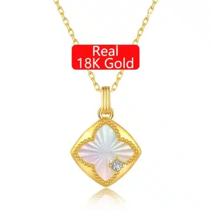 Fine Supplier Custom Wholesale Woman Natural Shells 18K Gold 5D Hollow Pendant Necklace 4 Clover Solid Gold Jewelry