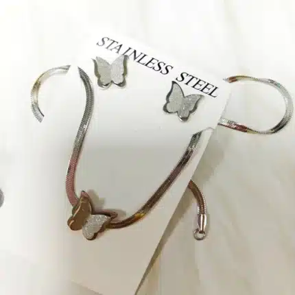 Titanium Jewelry Set No Fade None Tarnish Water Proof Jewellery Set butterfly Discount Necklace Earring Set