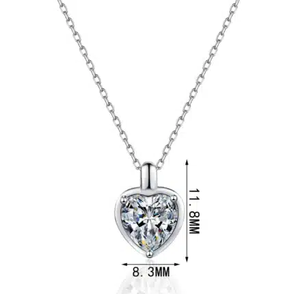 Fine Jewelry 925 Sterling Silver 1ct 2ct Sweet Heart Cut Moissanite Pendant Necklace for Women