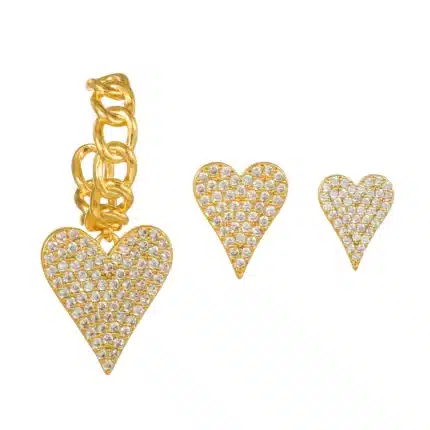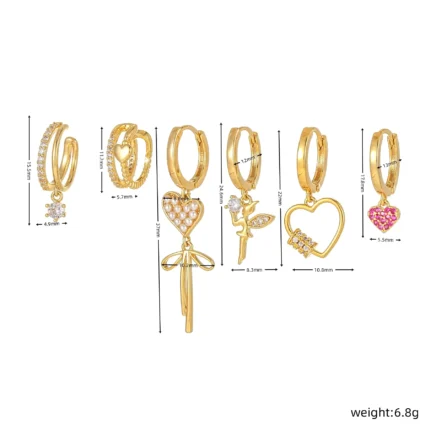Laodun INS Hot Selling Trendy Girls Stud Earring Set Classic Gold Plated Elegant Heart Design Zircon Earring