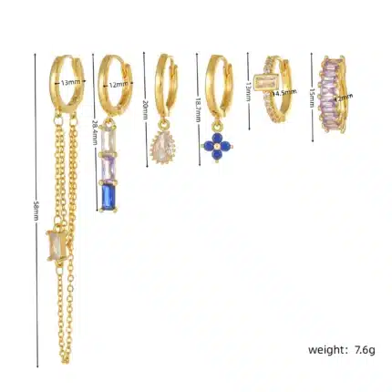 Key attributes Jewelry Main Material:Brass Material Type:Brass Main Stone:ZIRCON Plating:Gold Plated Earrings Type:Huggie Earrings Shapepattern:Geometric Style:Trendy Jewelry Type:Earrings Occasion:Anniversary Gender:Children’s
