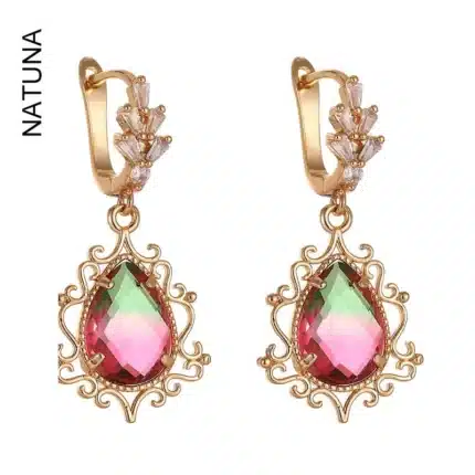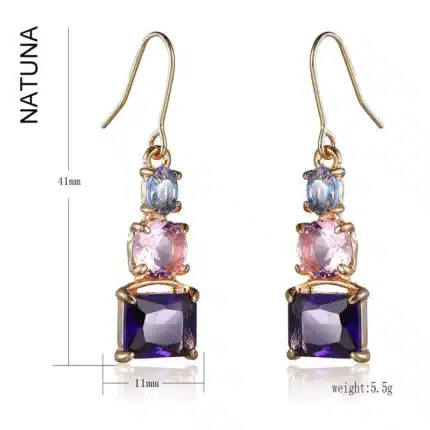 NATUNA Luxury Cubic Colored Ellipse Zircon Earrings in Brass Women’s