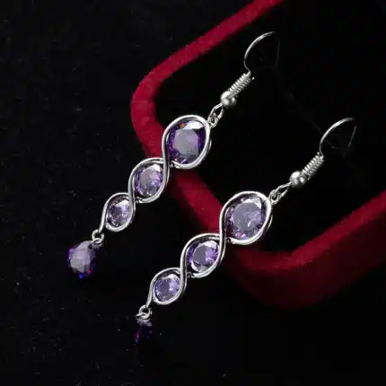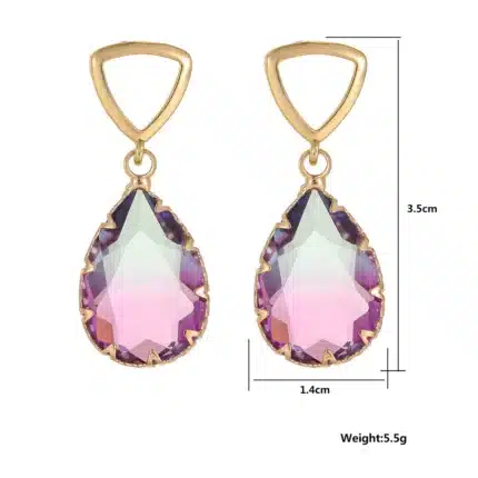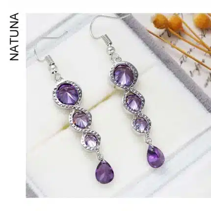Natuna Hot Styles Jewelry Brass Purple Zircon Drop Earrings Brass Tear Drop Earring Brass Fancy Earing for Holiday