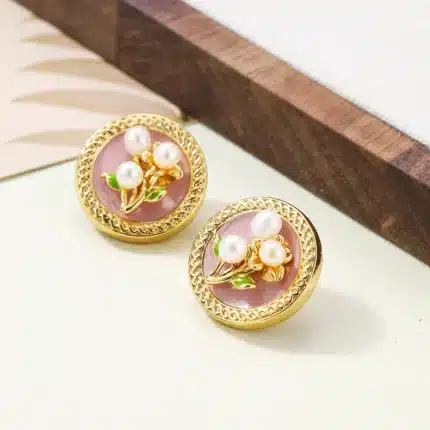 Original Chinese Oil Painting Enamel Earrings Silver Brass High-end Niche Fresh Water Pearl Earrings Ethnic Style Earrings