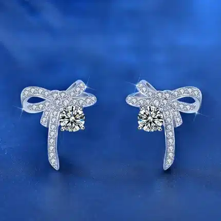 New Trendy Wedding Jewelry 925 Sterling Silver Wedding Jewelry 0.5ct Mossianite Bow Stud Earrings for Women