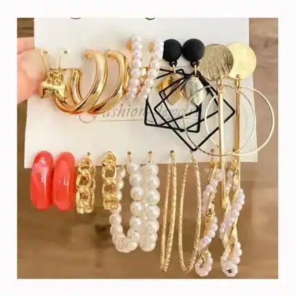 KISSWIFE Trendy Exquisite Pearl Metal Earrings Set Geometric Circle Dangle Acrylic Hoop Earring Sets for Women