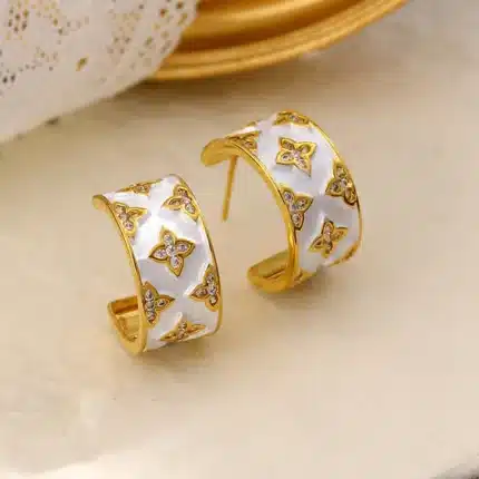 Four-leaf Clover Zircon Earrings French Fashion Luxury Enamel 4 Leave Clever C Shape Hoop Earrings
