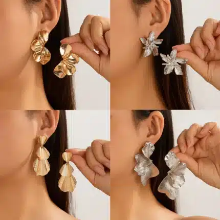 Lateefah Hot Sale Exaggerated Vintage Simple Women Gold Plated Alloy Petal Flowers Earrings