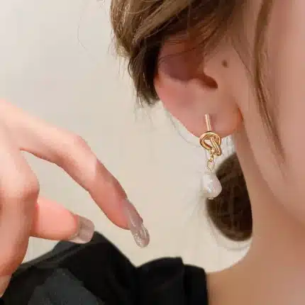 Luxury High Fashion Drop Earrings Geometric Copper With Knotted Pearl Flower Pattern Earrings