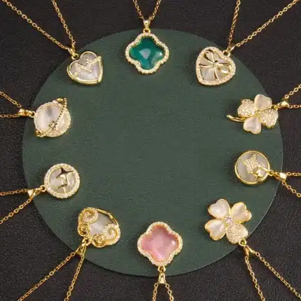 Key attributes Jewelry Main Material:Stainless Steel Style:TRENDY Plating:Gold Plated Shapepattern:clover/heart Gender:Children’s, Women’s Jewelry Type:NECKLACES Occasion:Anniversary